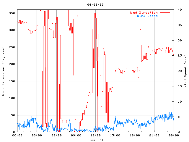 - Max Wind Speed: 6.9 ms-1 Time: 23:41:56 GMT