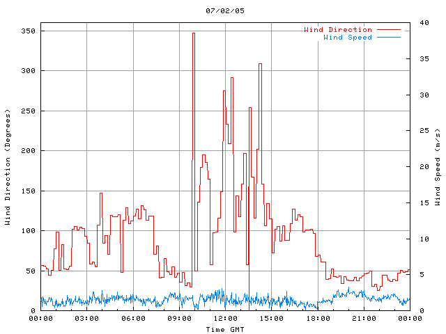 - Max Wind Speed: 3.3 ms-1 Time: 19:59:03 GMT