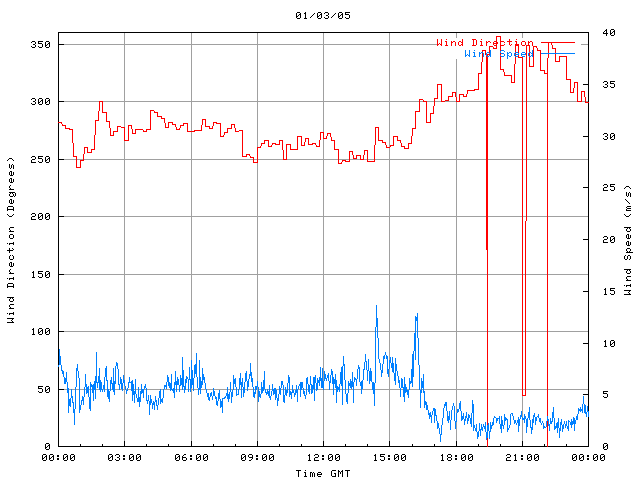 - Max Wind Speed: 14.7 ms-1 Time: 14:25:01 GMT