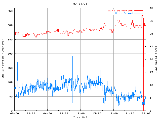 - Max Wind Speed: 25.0 ms-1 Time: 0:34:50 GMT