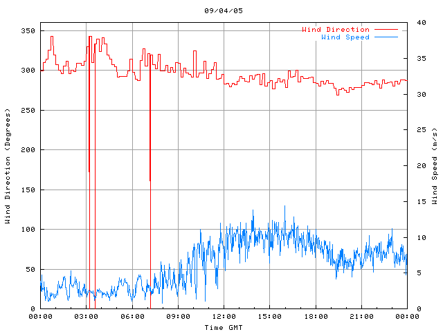 - Max Wind Speed: 14.4 ms-1 Time: 15:58:45 GMT