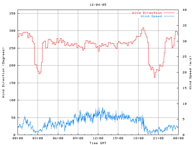 - Max Wind Speed: 8.9 ms-1 Time: 12:40:47 GMT