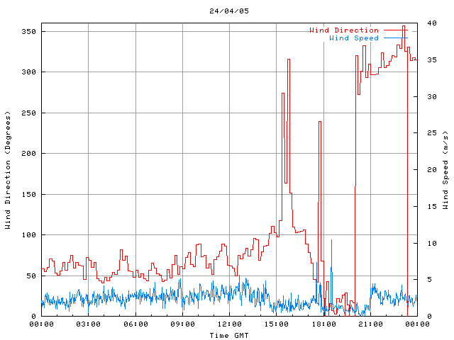- Max Wind Speed: 10.5 ms-1 Time: 18:30:48 GMT