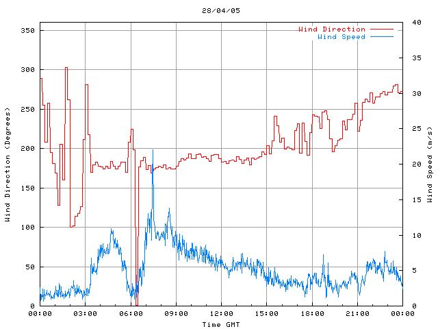 - Max Wind Speed: 22.2 ms-1 Time: 7:28:45 GMT