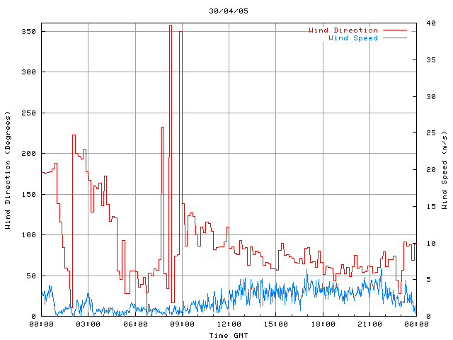 - Max Wind Speed: 6.5 ms-1 Time: 21:42:43 GMT