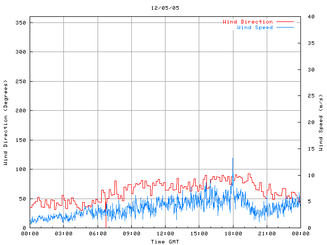 - Max Wind Speed: 13.2 ms-1 Time: 17:58:41 GMT