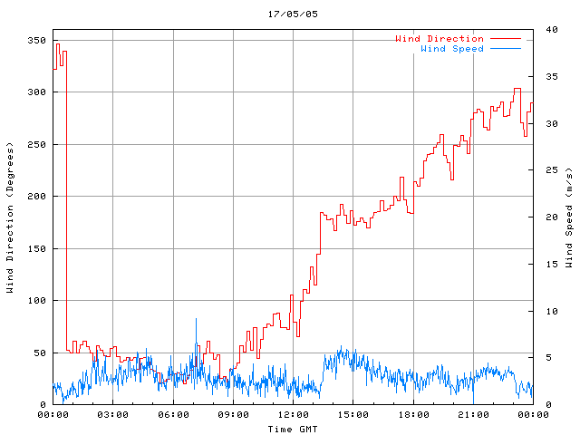 - Max Wind Speed: 9.2 ms-1 Time: 7:08:41 GMT