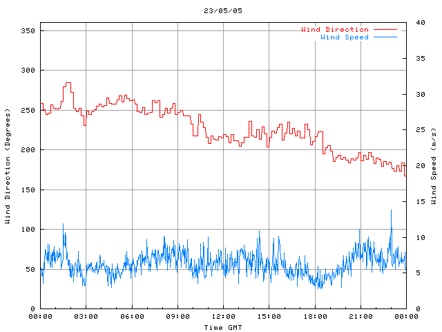 - Max Wind Speed: 13.8 ms-1 Time: 22:58:42 GMT