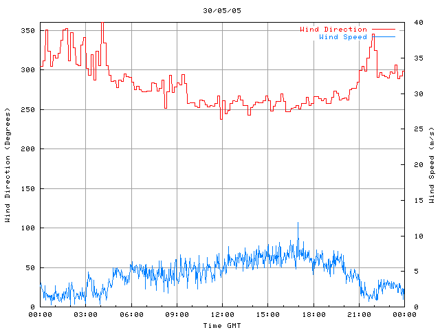 - Max Wind Speed: 11.9 ms-1 Time: 16:58:53 GMT