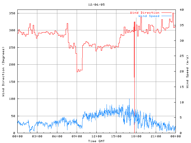 - Max Wind Speed: 11.1 ms-1 Time: 16:58:36 GMT