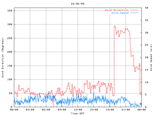 - Max Wind Speed: 8.7 ms-1 Time: 14:58:38 GMT