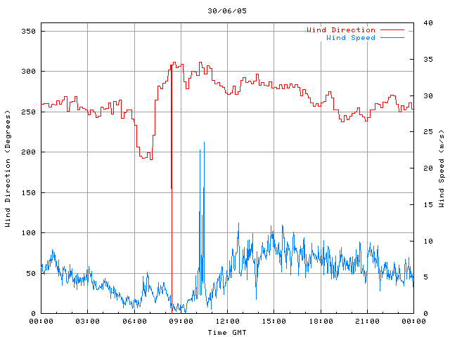 - Max Wind Speed: 23.6 ms-1 Time: 10:28:35 GMT