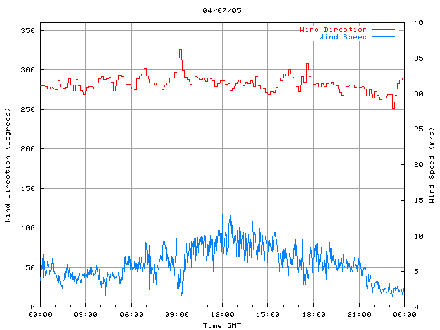 - Max Wind Speed: 13.1 ms-1 Time: 11:58:42 GMT