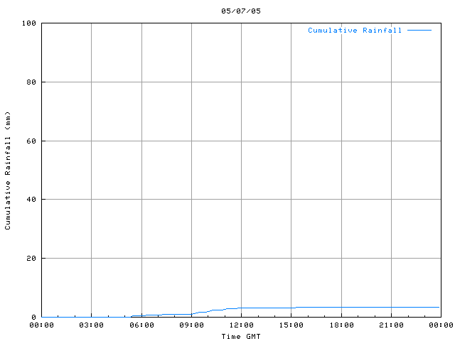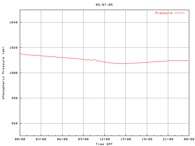 The PML meteorological station, situated on the south-west corner of the building roof, consists of a Hygroclip S3 temperature and humidity sensor housed in a radiation shield, a Mierij Meteo solid state wind sensor (MMW-005), a Chelsea instruments half-hemisphere PAR sensor, a Li-Cor pyranometer (LI-200SZ) and an Omni Instruments 6" tipping bucket raingauge (RG200). The data are logged every 5 minutes using a Pace Scientific XR5 data logger. The real-time rainfall data is likely in error - the correct values will be displayed after a time lag of approximately 24 hours. The meteorological station is sheltered from winds in the north-east and underestimates winds from this quarter. To use these data please contact Dr Tim Smyth.