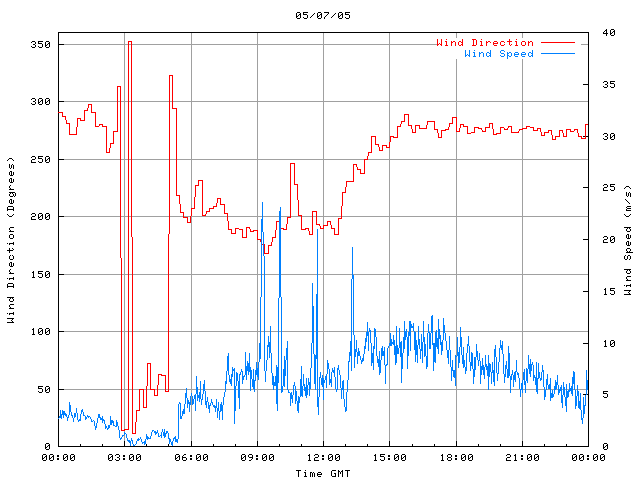 - Max Wind Speed: 24.9 ms-1 Time: 13:19:36 GMT