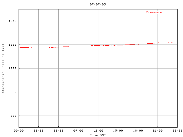 The PML meteorological station, situated on the south-west corner of the building roof, consists of a Hygroclip S3 temperature and humidity sensor housed in a radiation shield, a Mierij Meteo solid state wind sensor (MMW-005), a Chelsea instruments half-hemisphere PAR sensor, a Li-Cor pyranometer (LI-200SZ) and an Omni Instruments 6" tipping bucket raingauge (RG200). The data are logged every 5 minutes using a Pace Scientific XR5 data logger. The real-time rainfall data is likely in error - the correct values will be displayed after a time lag of approximately 24 hours. The meteorological station is sheltered from winds in the north-east and underestimates winds from this quarter. To use these data please contact Dr Tim Smyth.