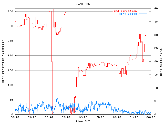 - Max Wind Speed: 6.5 ms-1 Time: 7:32:30 GMT