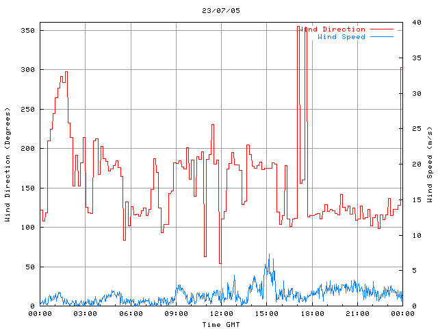- Max Wind Speed: 7.3 ms-1 Time: 15:08:44 GMT