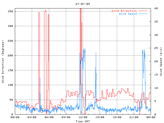 - Max Wind Speed: 24.9 ms-1 Time: 12:15:40 GMT