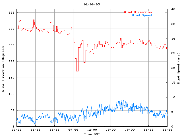 - Max Wind Speed: 9.9 ms-1 Time: 17:24:24 GMT