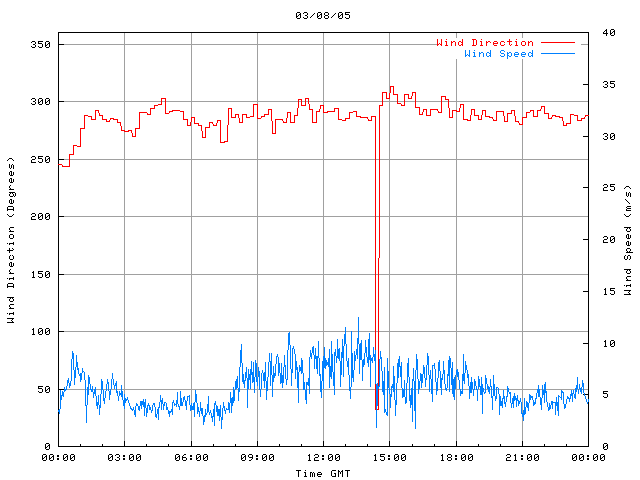 - Max Wind Speed: 13.3 ms-1 Time: 12:59:23 GMT