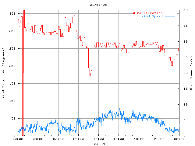 - Max Wind Speed: 9.2 ms-1 Time: 13:27:29 GMT