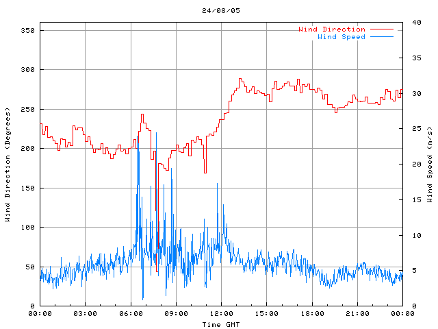 - Max Wind Speed: 24.5 ms-1 Time: 7:42:39 GMT