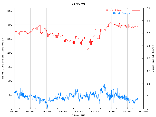 - Max Wind Speed: 9.7 ms-1 Time: 16:30:37 GMT