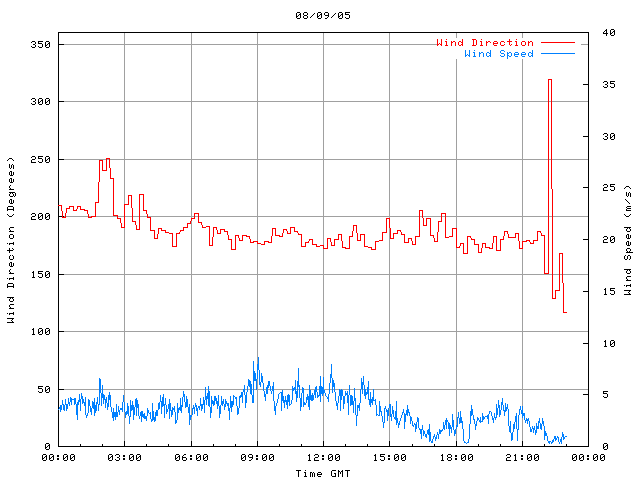 - Max Wind Speed: 9.3 ms-1 Time: 13:59:28 GMT