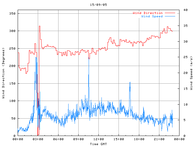 - Max Wind Speed: 24.9 ms-1 Time: 10:31:29 GMT