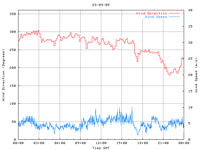 - Max Wind Speed: 10.1 ms-1 Time: 16:28:25 GMT