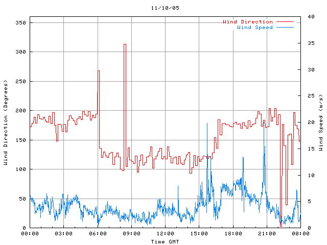 - Max Wind Speed: 24.2 ms-1 Time: 18:53:23 GMT