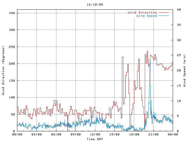 - Max Wind Speed: 24.8 ms-1 Time: 20:30:26 GMT