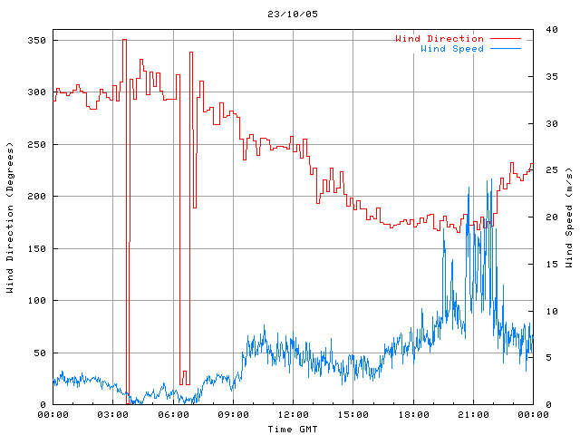 - Max Wind Speed: 24.1 ms-1 Time: 21:54:24 GMT