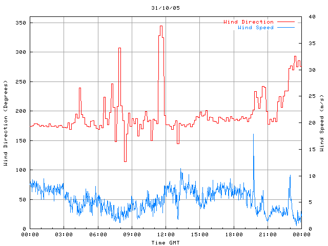 - Max Wind Speed: 19.0 ms-1 Time: 19:45:32 GMT