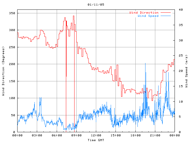 - Max Wind Speed: 23.4 ms-1 Time: 19:31:24 GMT