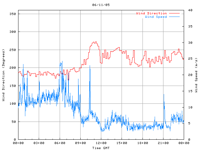 - Max Wind Speed: 24.3 ms-1 Time: 6:22:25 GMT