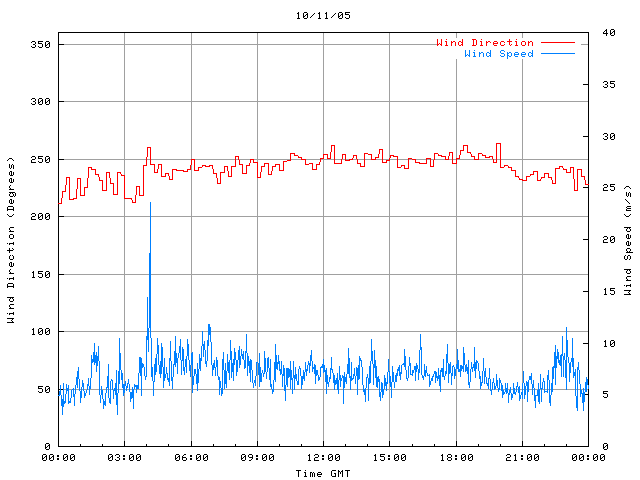 - Max Wind Speed: 24.9 ms-1 Time: 4:09:31 GMT