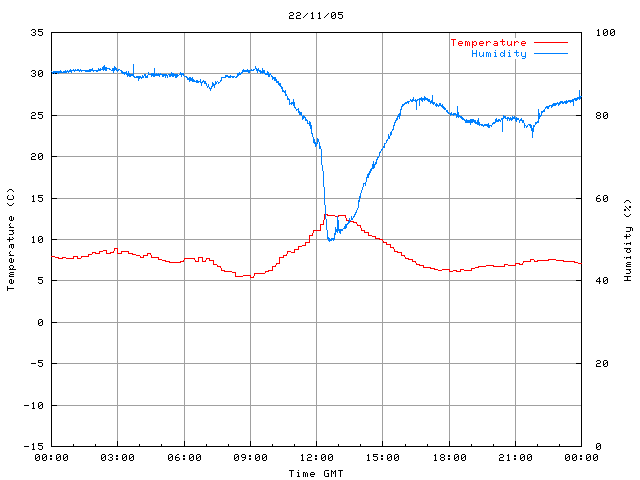 - Max Temp: 13.0 °C Time: 12:20:18 GMT