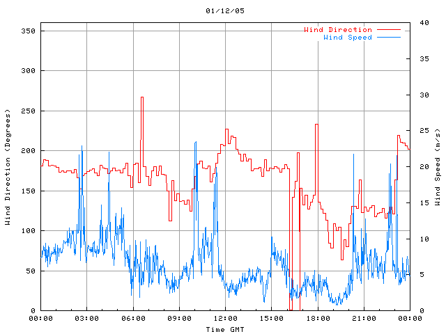 - Max Wind Speed: 25.0 ms-1 Time: 9:59:19 GMT