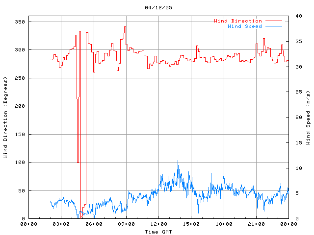 - Max Wind Speed: 11.5 ms-1 Time: 17:59:20 GMT