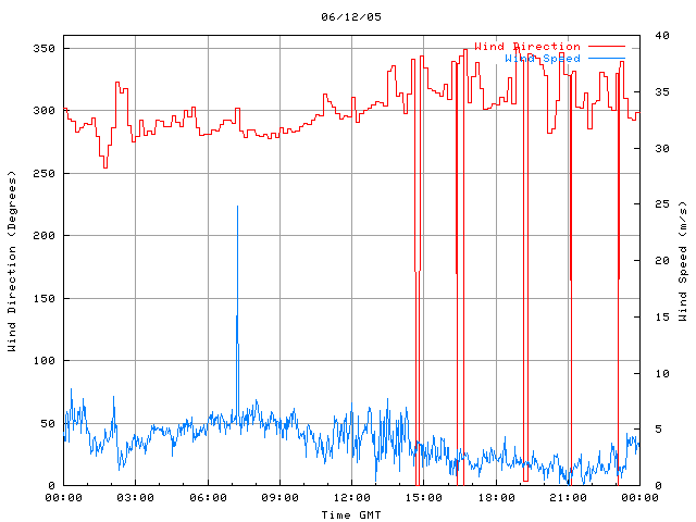 - Max Wind Speed: 24.9 ms-1 Time: 7:14:36 GMT