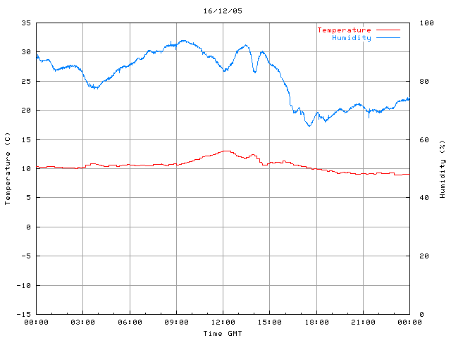- Max Temp: 13.1 °C Time: 12:00:23 GMT