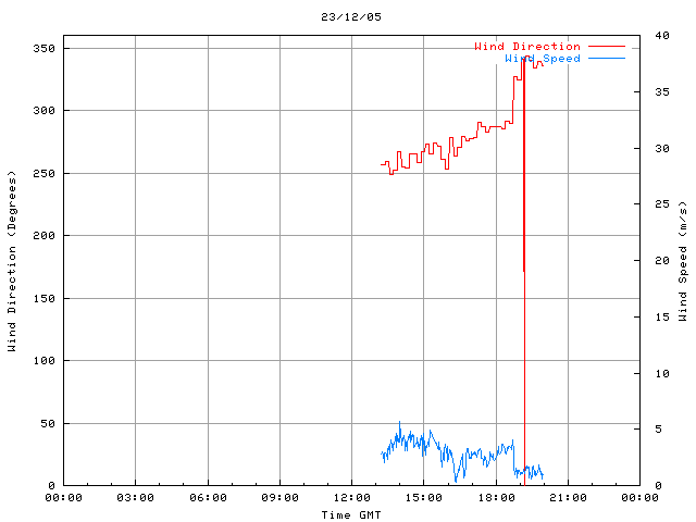 - Max Wind Speed: 5.7 ms-1 Time: 13:59:19 GMT
