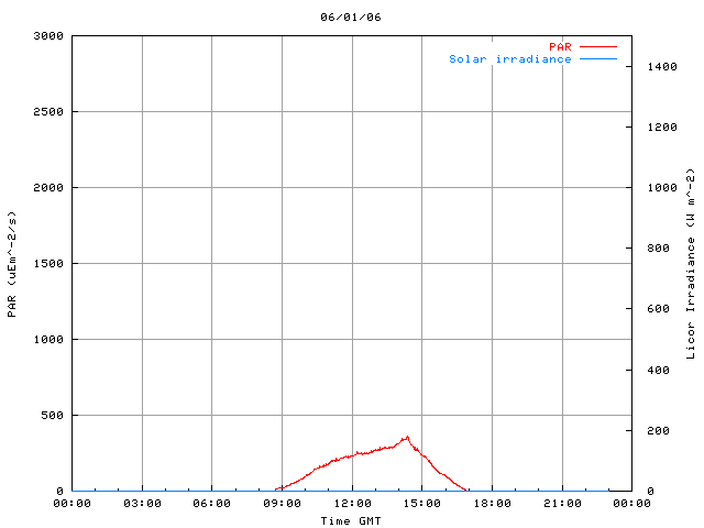 The PML meteorological station, situated on the south-west corner of the building roof, consists of a Hygroclip S3 temperature and humidity sensor housed in a radiation shield, a Mierij Meteo solid state wind sensor (MMW-005), a Chelsea instruments half-hemisphere PAR sensor, a Li-Cor pyranometer (LI-200SZ) and an Omni Instruments 6" tipping bucket raingauge (RG200). The data are logged every 5 minutes using a Pace Scientific XR5 data logger. The real-time rainfall data is likely in error - the correct values will be displayed after a time lag of approximately 24 hours. The meteorological station is sheltered from winds in the north-east and underestimates winds from this quarter. To use these data please contact Dr Tim Smyth.