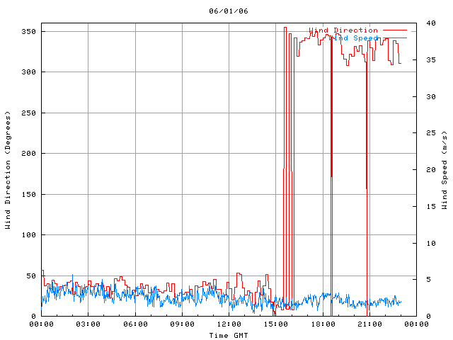 - Max Wind Speed: 5.7 ms-1 Time: 2:00:25 GMT