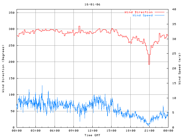 - Max Wind Speed: 14.2 ms-1 Time: 4:00:23 GMT