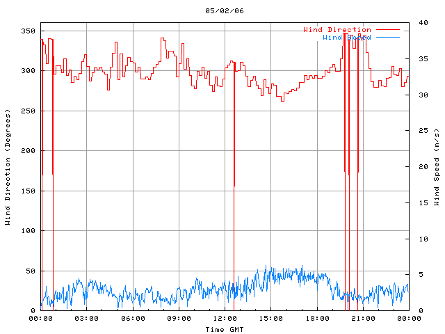- Max Wind Speed: 6.5 ms-1 Time: 16:33:22 GMT
