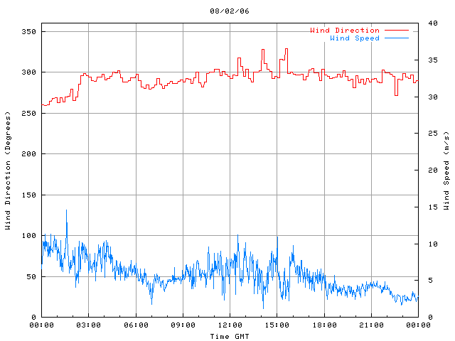 - Max Wind Speed: 14.6 ms-1 Time: 1:36:23 GMT