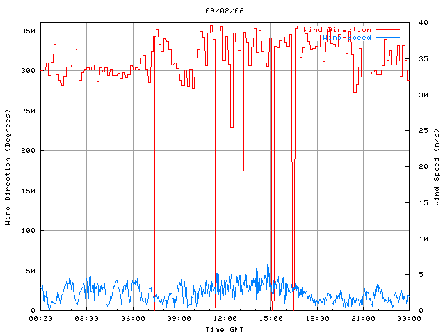 - Max Wind Speed: 8.0 ms-1 Time: 13:41:23 GMT